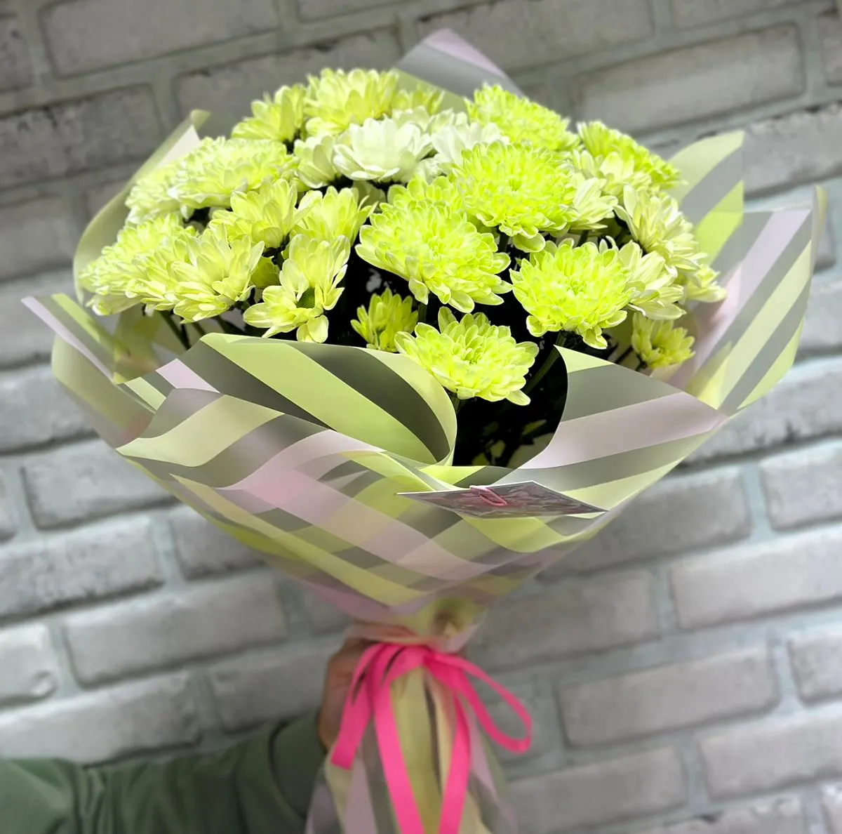 Каждый цветок в букете будто излучает солнечный свет, создавая атмосферу тепла и уюта. Желтые хризантемы отлично подходят для различных поводов: от дня рождения до праздничных мероприятий, а также как знак внимания без особого повода.