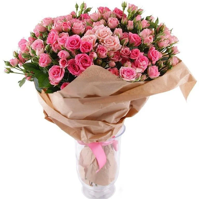 Кустовая роза, упаковка, лента