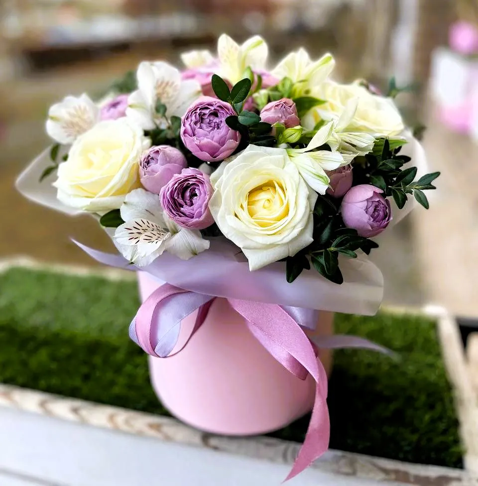 Не упустите возможность выбрать шляпную коробку с розами и альстромериями — это стильное решение, способное удивить и порадовать. Наполните праздник красотой и эмоциями, подарив роскошь цветочной композиций!